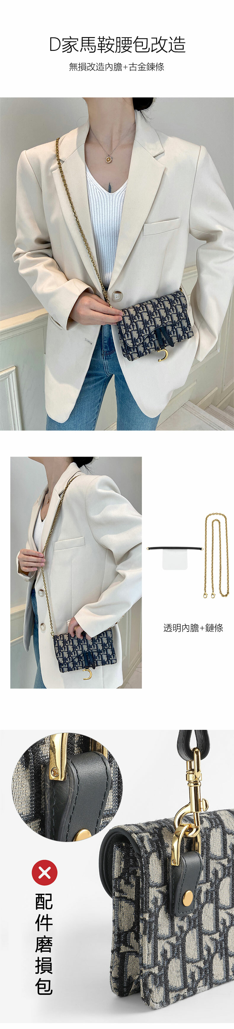 woc馬鞍腰包改造鏈條配件錢包肩帶包包斜挎細包鏈單買