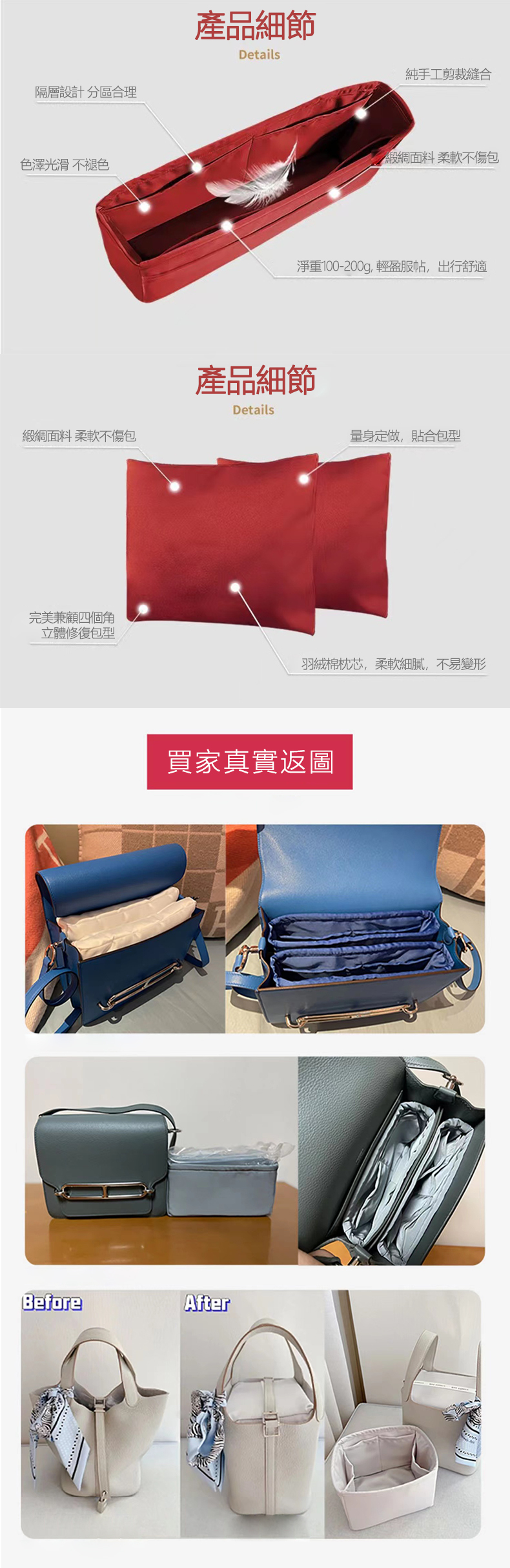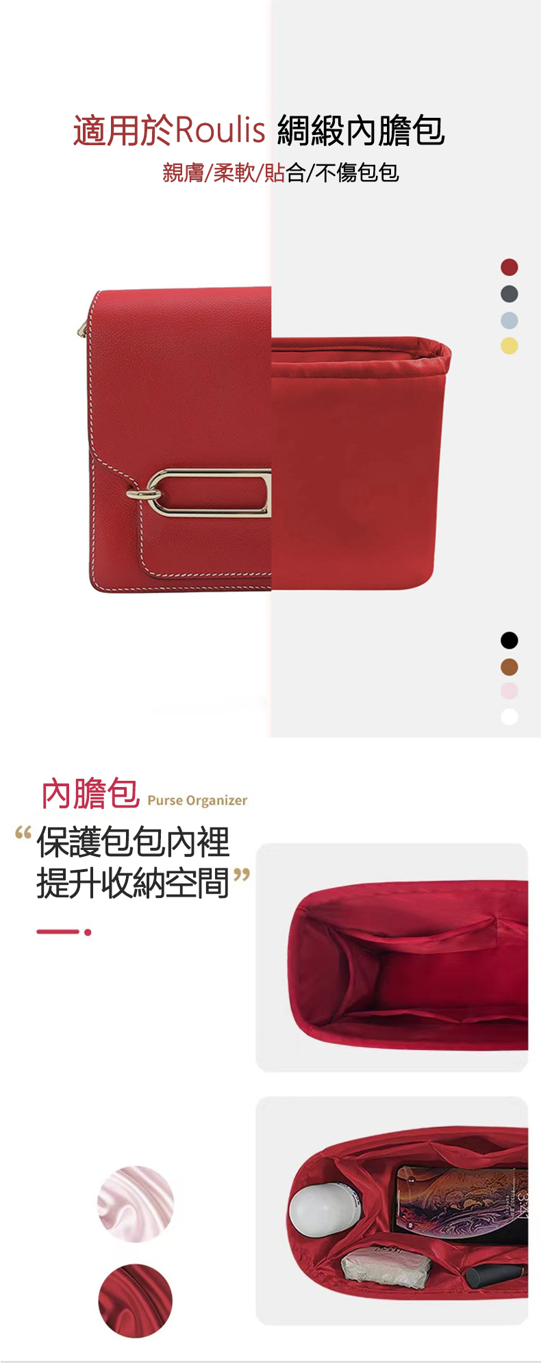 適用於hermes-roulis愛馬仕豬鼻子內膽包內襯綢緞收納包-