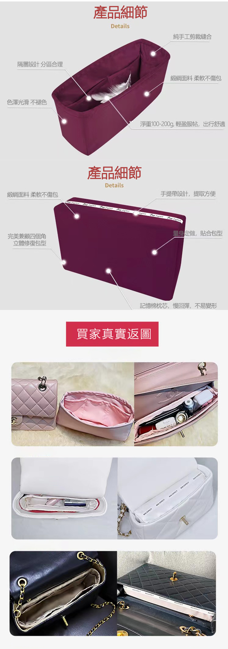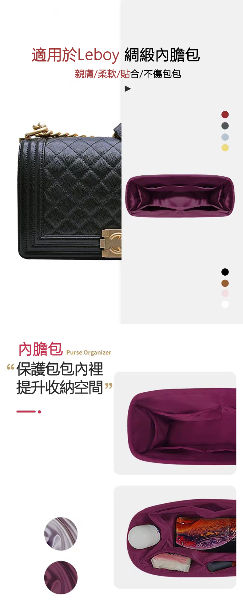 適用chanel香奈兒leboy內膽包內襯袋進口緞綢整理收納包