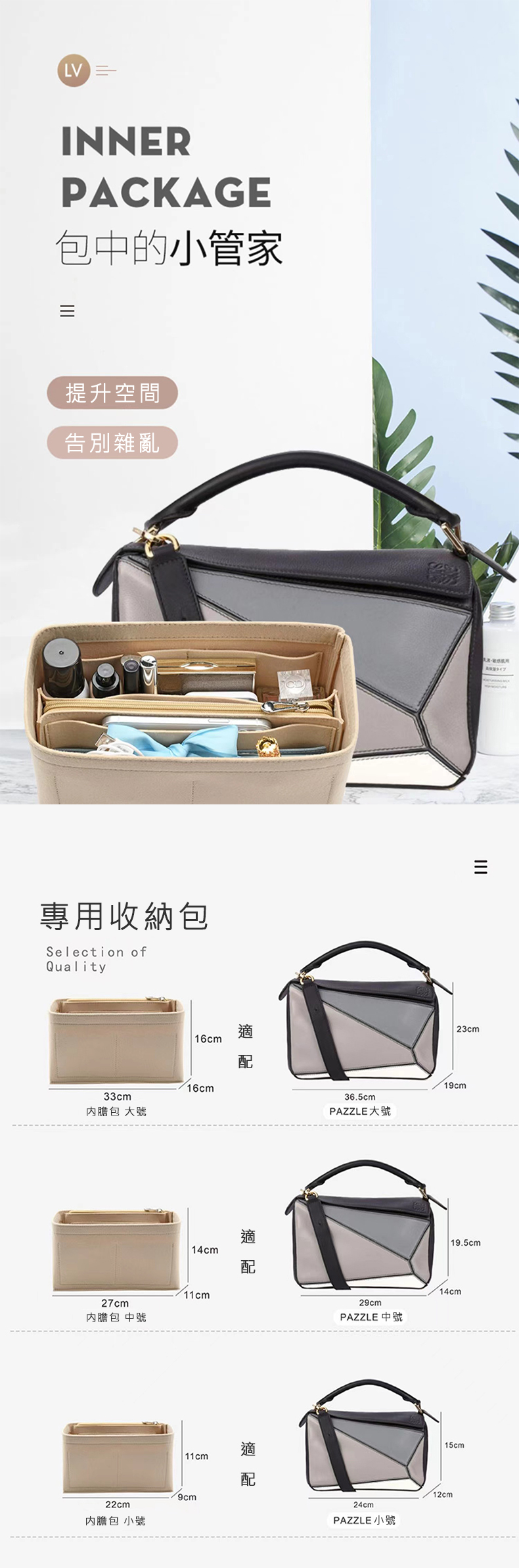 羅意威內膽包中包幾何收納包內襯袋包撐型