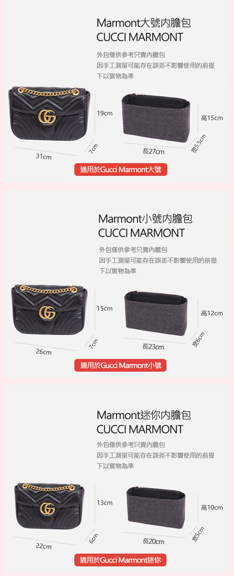 Gucci Marmont古馳包內膽 馬蒙包內襯袋包