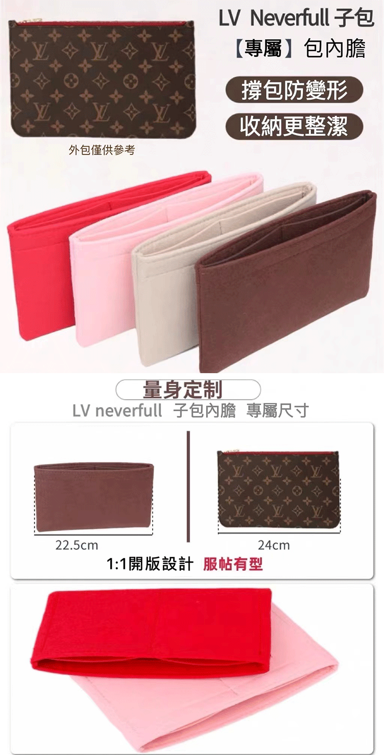 LV neverfull子包內膽包媽咪包子袋改造化妝包中包撐內袋輕薄