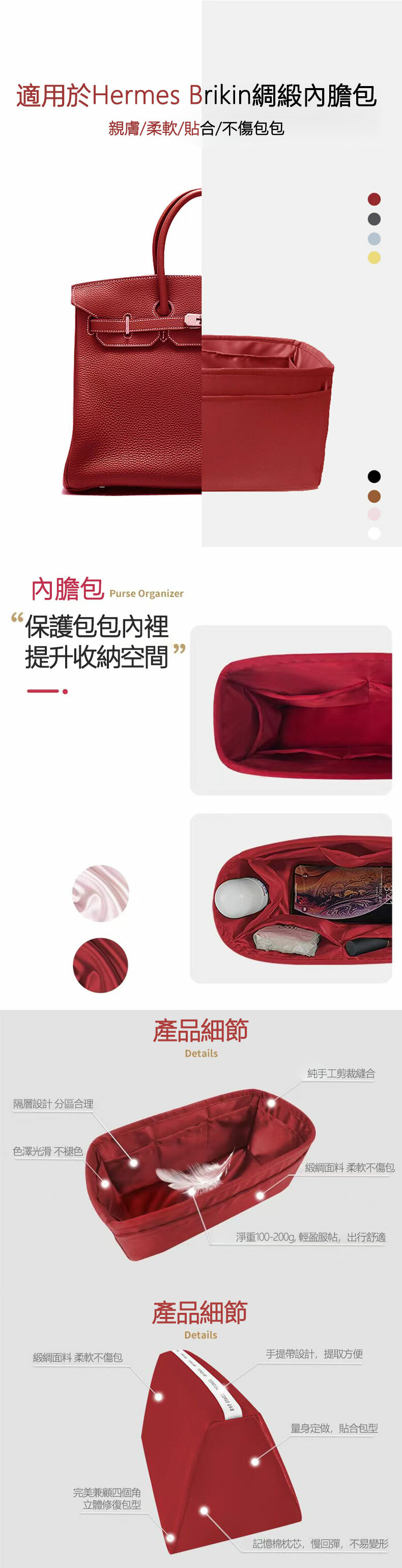 適用於birkin鉑金內膽包25-30-35綢緞整理內襯收納包中包