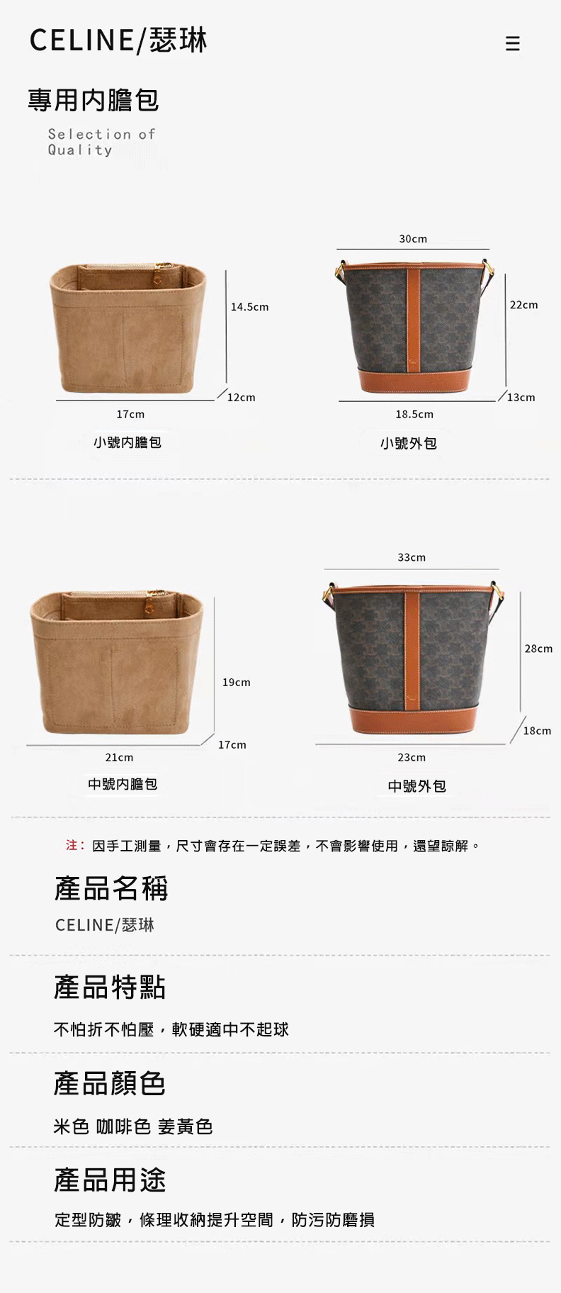 CELINE賽思瑟琳Triomphe凱旋門水桶內膽包|預購商品下單訂製需耐心等待14天