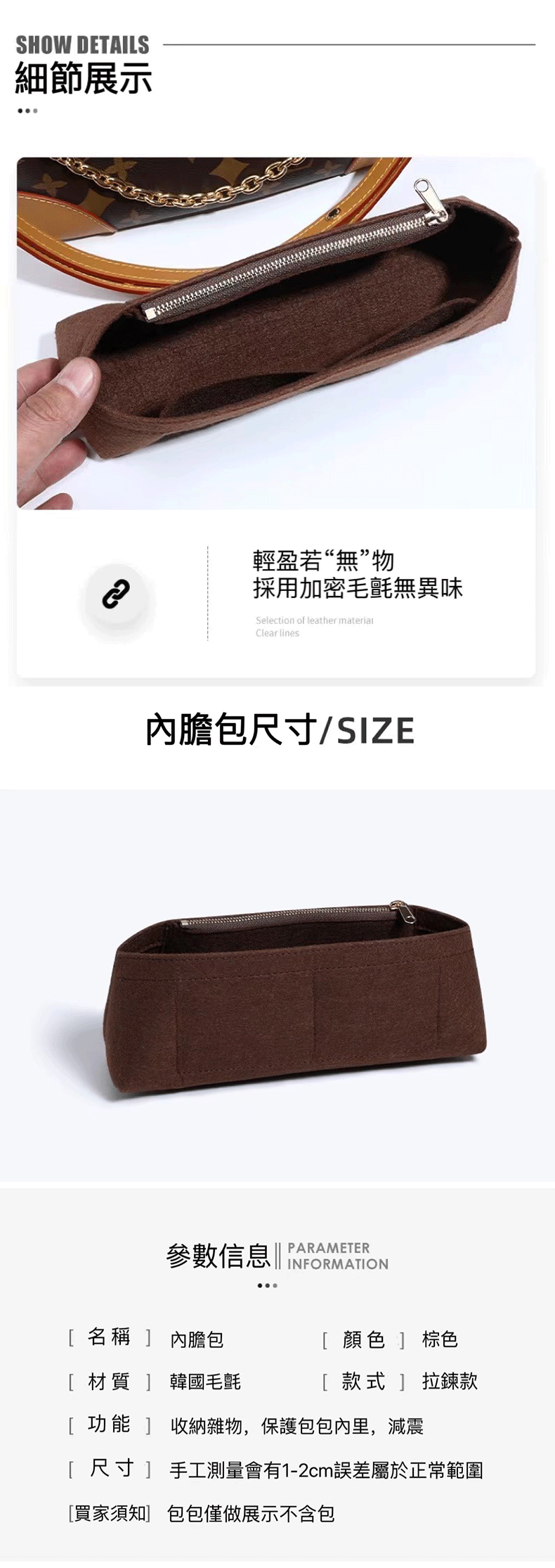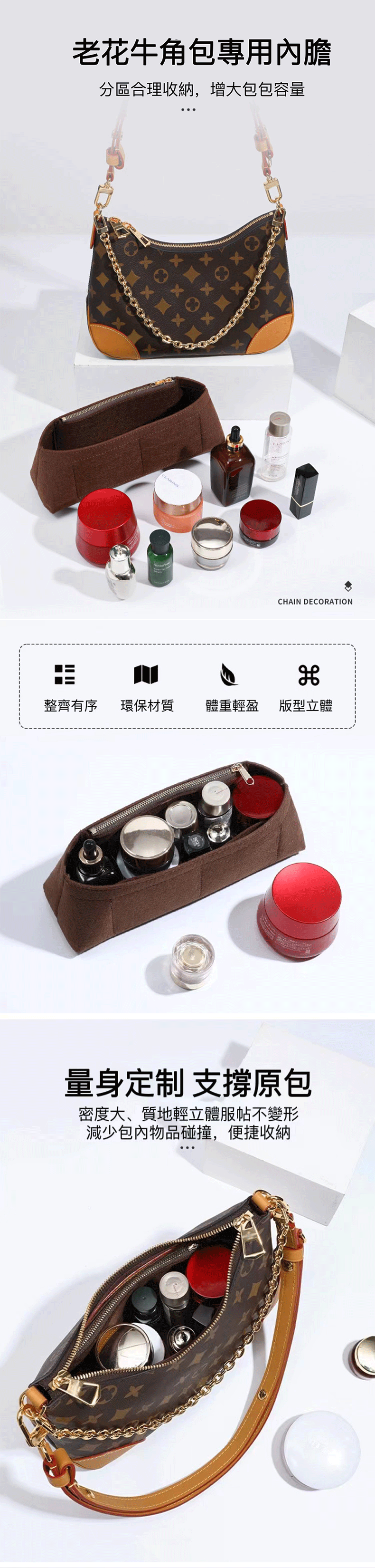 老花牛角包內膽收納包撐包型內襯包包毛氈內袋單買配件